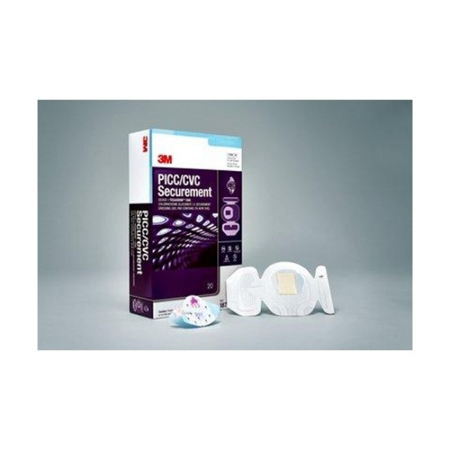 An antimicrobial I.V. dressing designed to offer site visibility, catheter securement, and breathability. Antimicrobial Protection: Integrated chlorhexidine gluconate (CHG) gel pad provides immediate and continuous protection. Securement: Reinforced border and notch provide catheter securement. Site Visibility: Transparent film and gel pad allows continuous site observation. Breathability: Promotes moisture evaporation and enhances securement.Single package with device and dressing. Sutureless securement balances reliable adhesion with gentleness to skinDesigned to be worn for up to 7 daysSkin-friendly materials improve comfort and mobility.Accommodates the majority of PICC and CVC catheters up to and including 12 French.Eliminates the risks and costs of suture-related needlestick injuriesEasy to apply and remove.Integrated microbial protection.PICC / CVC Securement Device + CHG Dressing