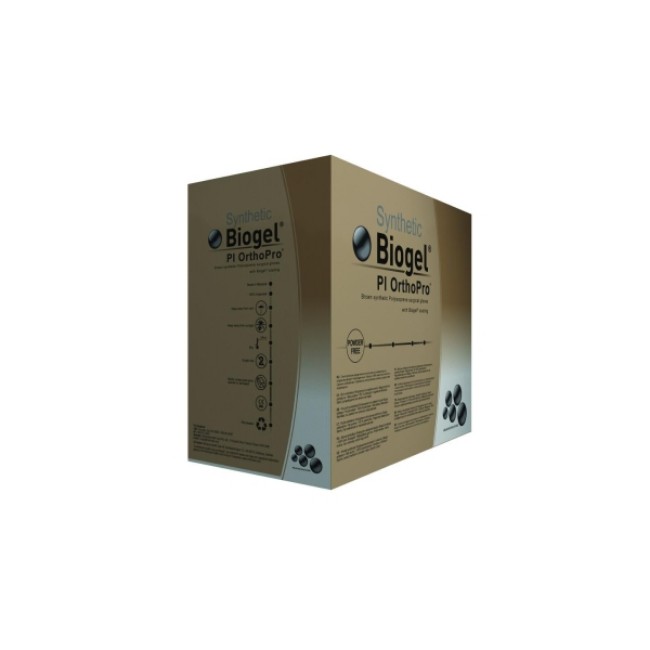 Sterile, powder-free, synthetic, polyisoprene surgical glove. Thicker for increased protection. Biogel PI OrthoPro reduces the possibility of glove-related latex protein sensitization because it is made from a synthetic elastomer. The new glove provides fit, feel and comfort comparable to natural rubber latex. Biogel PI OrthoPro is typically 13% thicker than Biogel PI to provide durability and extra protection during more rigorous and/or longer procedures.
