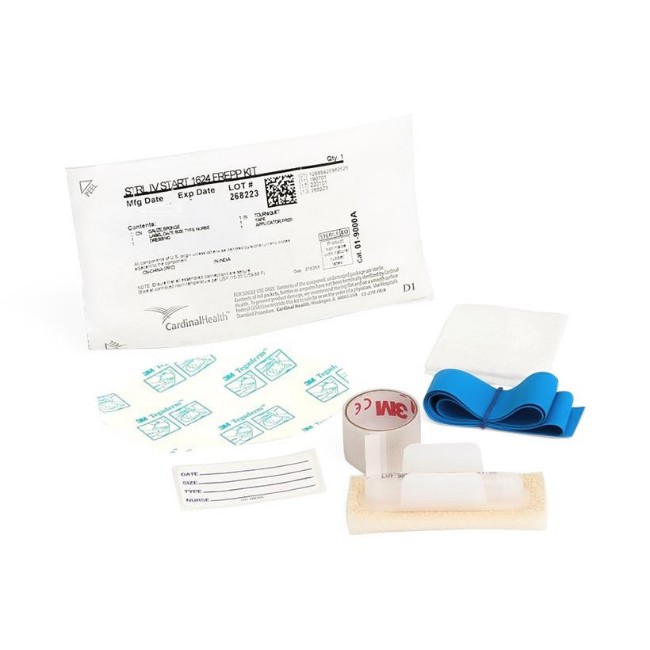 | Product Name | IV START KIT CHLORAPREP 1ML APPLICATOR TAPE 3/4IN X 18IN GAUZE X2 2IN X 2IN 4 PLY CHANGE DATE LABEL BLUE TOURNIQUET 3/4IN CARDINAL HEALTH TD-24 TRANSPARENT DRESSING 2.375IN X 2.75IN 076 LATEX FREE |