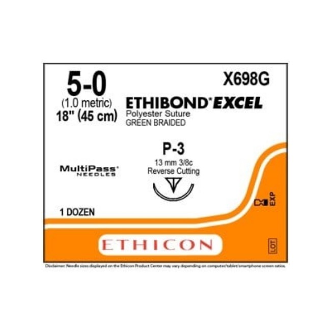 Sutures: Ethibond-Excel Suture, Green, PS-3, Size 5/0, 18" is manufactured by ETHICON™.